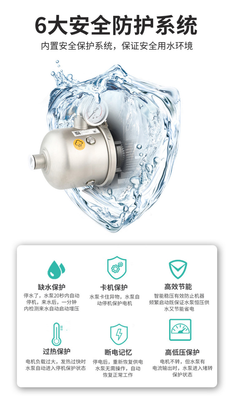 变频恒压供水自动控制装置具有以下控制功能:(1)设有手动/自动切换电路,当切换至自动位置时,系统可根据出口压力变化,自动调节变频泵的转速和自动启动、停止备用泵,以维持出口压力恒定,当变频控制电路出现故障时,可切换至手动位置,使水泵直接在工频下运行,保证正常供水;(2)能够在1d内设置1~9个供水时间段,一周内各天的供水时间可以不同;(3)用PLC控制水泵(包括备用泵)全循环软启动,周期性地自动交换使用,以期水泵寿命基本一致;(4)地下蓄水池缺水后取水泵自动停机保护,补水泵自动开机补水,蓄满水后补水泵自动停机,蓄水池水位以数字显示;(5)故障显示及报警,具有缺相、短路、过热、过载、过压、欠压、漏电、瞬时断电保护等电气保护功能.